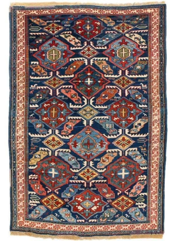 Alpine Kuba refers to a group of Caucasian rugs woven in the mountainous regions surrounding Kuba (Quba) in northern Azerbaijan. These rugs belong to the broader Kuba weaving tradition, which is known for its fine weave and intricate geometric patterns. Alpine Kuba rugs often display complex field designs, small-scale motifs, and vivid colors, including deep blues, reds, and ivory. The mountainous villages of this region produced many distinctive variations within the Kuba rug group.