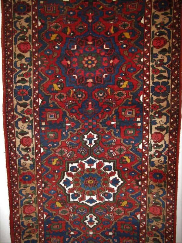 These carpets reflect the tribal weaving traditions of the Bakhtiari people and are appreciated for their colorful designs and strong construction.