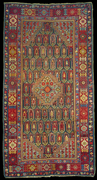 Chila rugs are a type of Caucasian carpet, generally associated with the Shirvan weaving region. These carpets typically feature intricate geometric patterns and vibrant natural dyes characteristic of Caucasian rug traditions. Hilla is the name of a town west of Baku. Hilla rugs were mostly made in a larger format and they are distinguished by the all over paisley design and the center medallion. These are rare items and highly in demand.