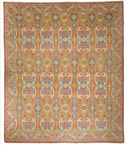 Cuenca carpets are woven in the town of Cuenca in Spain, which was an important center of carpet production during the 15th and 16th centuries. Spanish carpets from this region often display strong Moorish design influences, reflecting the cultural exchange between Islamic and European artistic traditions in medieval Spain. Cuenca carpets represent an important stage in the development of European carpet weaving. Cuenca is a name of a city in Spain with a tradition of carpet weaving going back to the 11th century.