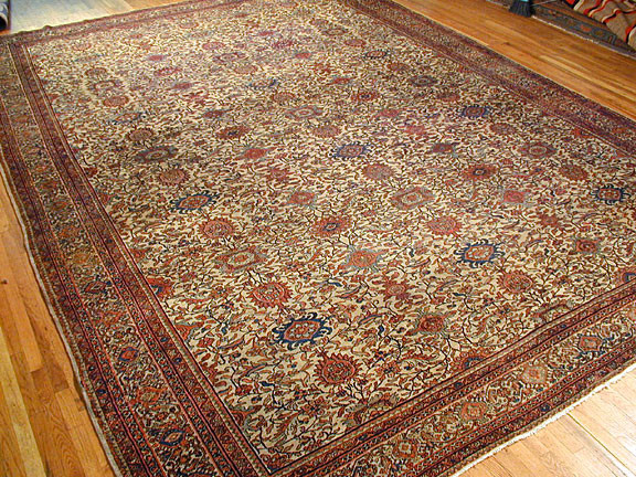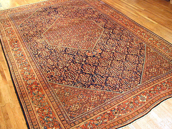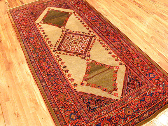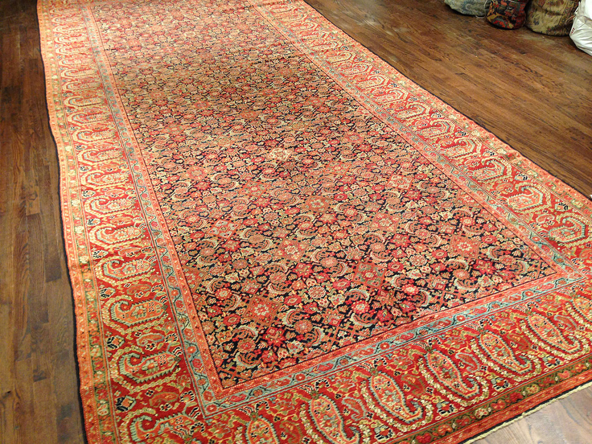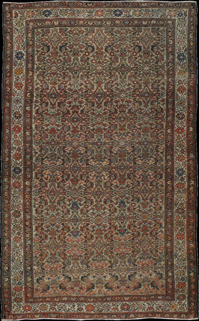 Farahan rugs are woven in the Farahan district of central Iran, located northwest of the city of Arak. These carpets are known for their fine weaving, elegant floral designs, and the frequent use of the Herati pattern, a repeating motif consisting of a diamond surrounded by stylized leaves. Farahan rugs became especially popular during the 19th century, when they were widely exported to European and American markets. Fereghan carpets proved popular with the European and American markets and remains so today. As limits of the Fereghan region have never been defined , rugs and carpets sometimes attributed either to Fereghan or Sarouk. In the industry they are also called Sarouk Fereghan. The allover Herati pattern is the most common Fereghan design.