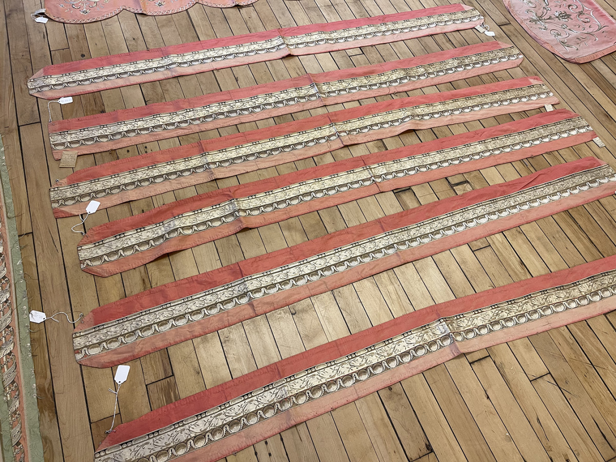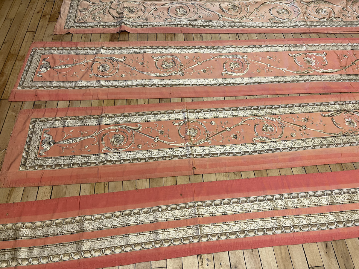 Italian rugs and textiles refer to woven and decorative fabrics produced in Italy, particularly during the Renaissance and later periods. Italy has a long tradition of textile production, including velvets, tapestries, and woven floor coverings, often influenced by both European and oriental design traditions. Italian textiles are known for their refined craftsmanship, rich materials, and decorative elegance, and played an important role in the development of European decorative arts. Rugs were woven by Italian peasants in the 18 and 19 Centuries. A variety of brocaded and embroidered textiles was produced for domestic uses. Most of these weavings were relatively narrow and were probably intended as furniture covers.
