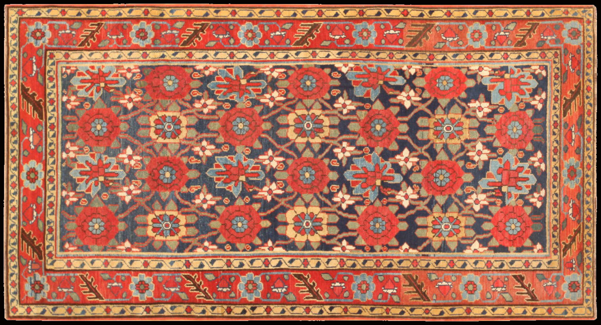 Northwest Persia refers to a region of Iran that includes major carpet-producing areas such as Tabriz, Heriz, and Karadja. Carpets from this region often display bold geometric designs, medallions, and strong structural qualities, reflecting both village and workshop weaving traditions. Northwest Persian rugs are among the most important groups within the broader Persian carpet tradition. A great many impressive rugs were made in northwest Persia during the 18 and 19 Century. They often display both Persian and Caucasian decorations. Typically Persian palm leaves alternate with the forked tendrils of Caucasian rugs. The Persian design with its elegant lines appears stiff and geometric.