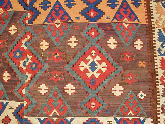 For variety of reasons they never prepared the necessary amount of the yarn for an entire rug or carpet at one time. The yarn was made in small batches to accommodate the dying vessels and in most cases the colors matched perfectly. However many times because of the slight difference in wool and dyestuff quality the aging of these yarns differed with the time. Therefore in most old items you will find streaks of colors, since the rugs are made row by row. This phenomenon is so often that in many reproduction carpets they create abrash by purpose.