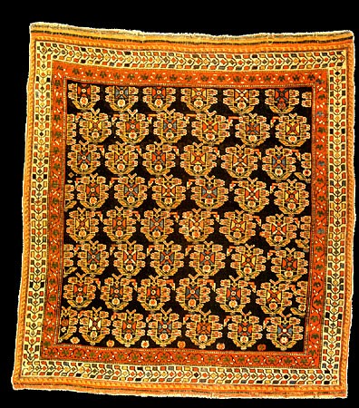 Some Afshar rugs follow tribal traditions, while others follow the ornamental motifs of the nearby city workshops of Kirman. Borders are decorated with stylized rosettes and vines. Backgrounds tend to be dark with a constraining variety of colors.