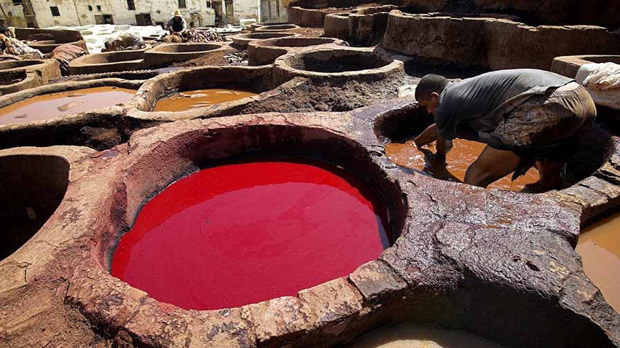 In 1856, von Hofmann's student William Henry Perkin discovered mauveine and went into industry producing the first syntheticdye. Other aniline dyes followed, such as fuchsine, safranine, and induline. At the time of mauveine's discovery, aniline was expensive. Soon thereafter, applying a method reported in 1854 by Antoine B_champ, it was prepared "by the ton". The B_champ reduction enabled the evolution of a massive dye industry in Germany. Today, the name of BASF, originally Badische Anilin- und Soda-Fabrik, now among the largest chemical suppliers, echoes the legacy of the synthetic dye industry, built via aniline dyes and extended via the related azo dyes. The first azo dye was aniline yellow. Aniline dyes are synthetic dyes introduced in the mid-19th century, derived from coal-tar chemical compounds. They were first developed in Europe and quickly spread throughout the oriental rug industry. These dyes produced extremely bright colors and were easier to manufacture than traditional vegetable dyes, but early aniline dyes often proved unstable and prone to fading or bleeding. The introduction of aniline dyes significantly changed the appearance of many carpets produced during the late 19th century.