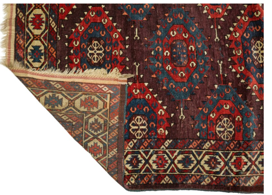 The C Gul is a motif found in Turkoman rugs, consisting of a stylized geometric medallion that resembles the letter āCā within its design structure. Like other Turkmen guls, it serves as a tribal design element and may appear repeated across the field of the carpet. Guls are important identifying motifs in Turkmen weaving traditions and often help distinguish the work of different tribal groups. A Turkoman octagon gul in which C-shapes or crescents are arranged, with crescents facing both left and right. This gul is found Yomud rugs.