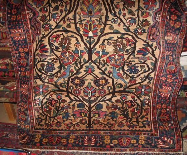These carpets reflect the tribal weaving traditions of the Bakhtiari people and are appreciated for their colorful designs and strong construction.