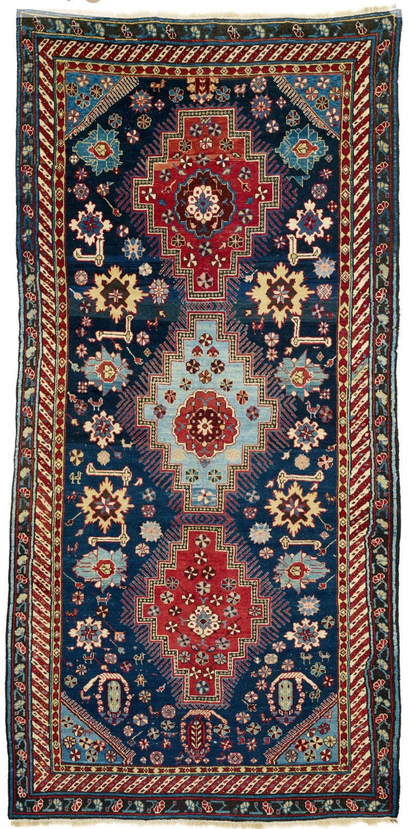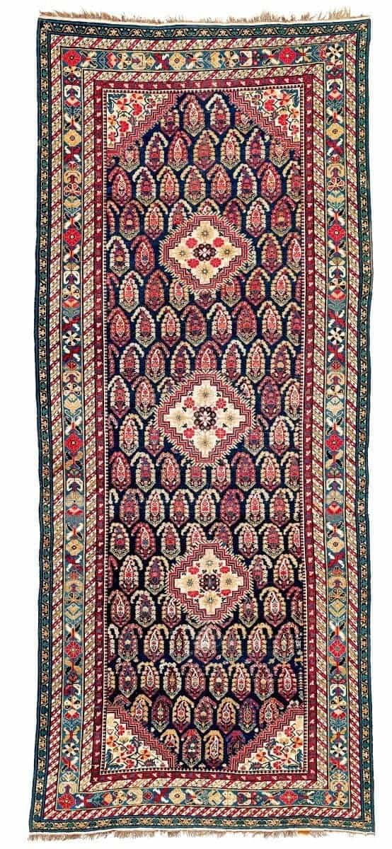 Chila rugs are a type of Caucasian carpet, generally associated with the Shirvan weaving region. These carpets typically feature intricate geometric patterns and vibrant natural dyes characteristic of Caucasian rug traditions. Hilla is the name of a town west of Baku. Hilla rugs were mostly made in a larger format and they are distinguished by the all over paisley design and the center medallion. These are rare items and highly in demand.