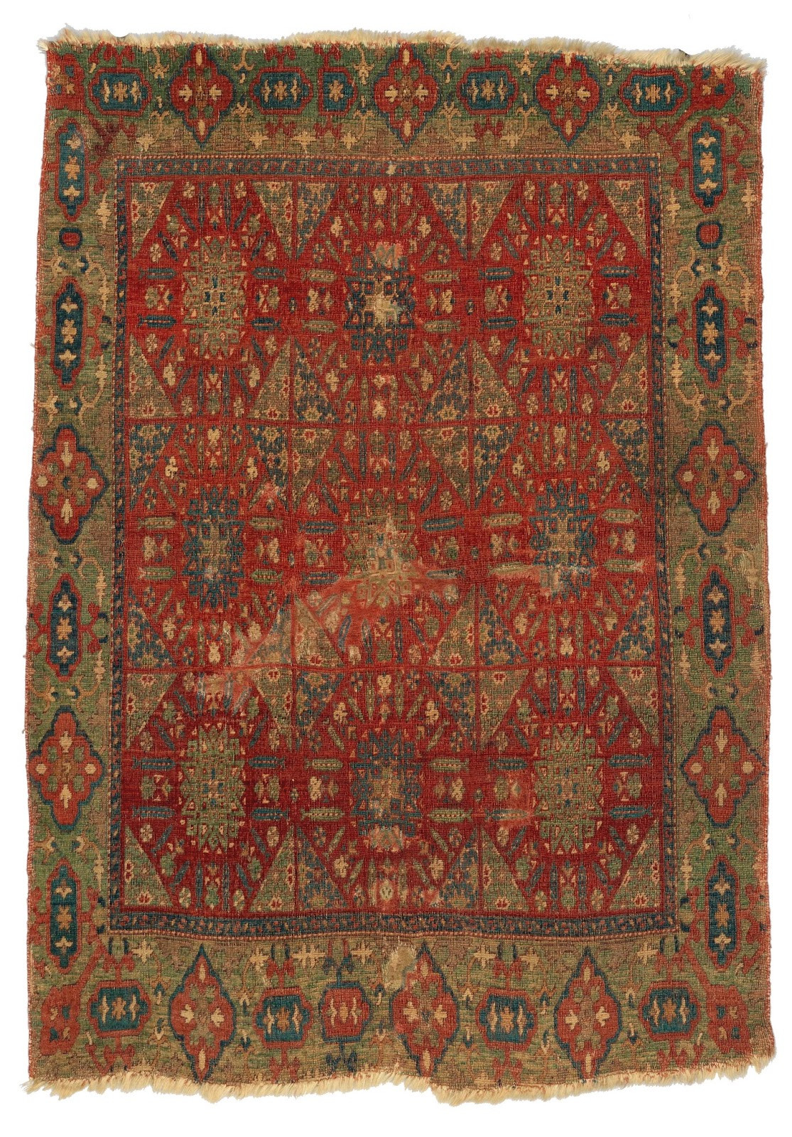 From 16 to 18 Century carpets were made in the Syrian region under the Mamluk influence. Most of these carpets were made in repeated designs therefore they are also known as Compartment Rugs. Damascus carpets refer to rugs associated with Damascus in present-day Syria, which historically served as an important cultural and commercial center in the Middle East. During certain periods, carpets linked to Damascus display influences from Persian, Anatolian, and Islamic decorative traditions. These carpets often feature geometric or floral patterns reflecting the artistic styles of the region. Although Damascus was more widely known as a textile and trade center, the term Damascus carpet is sometimes used to describe historical carpets associated with the region.
