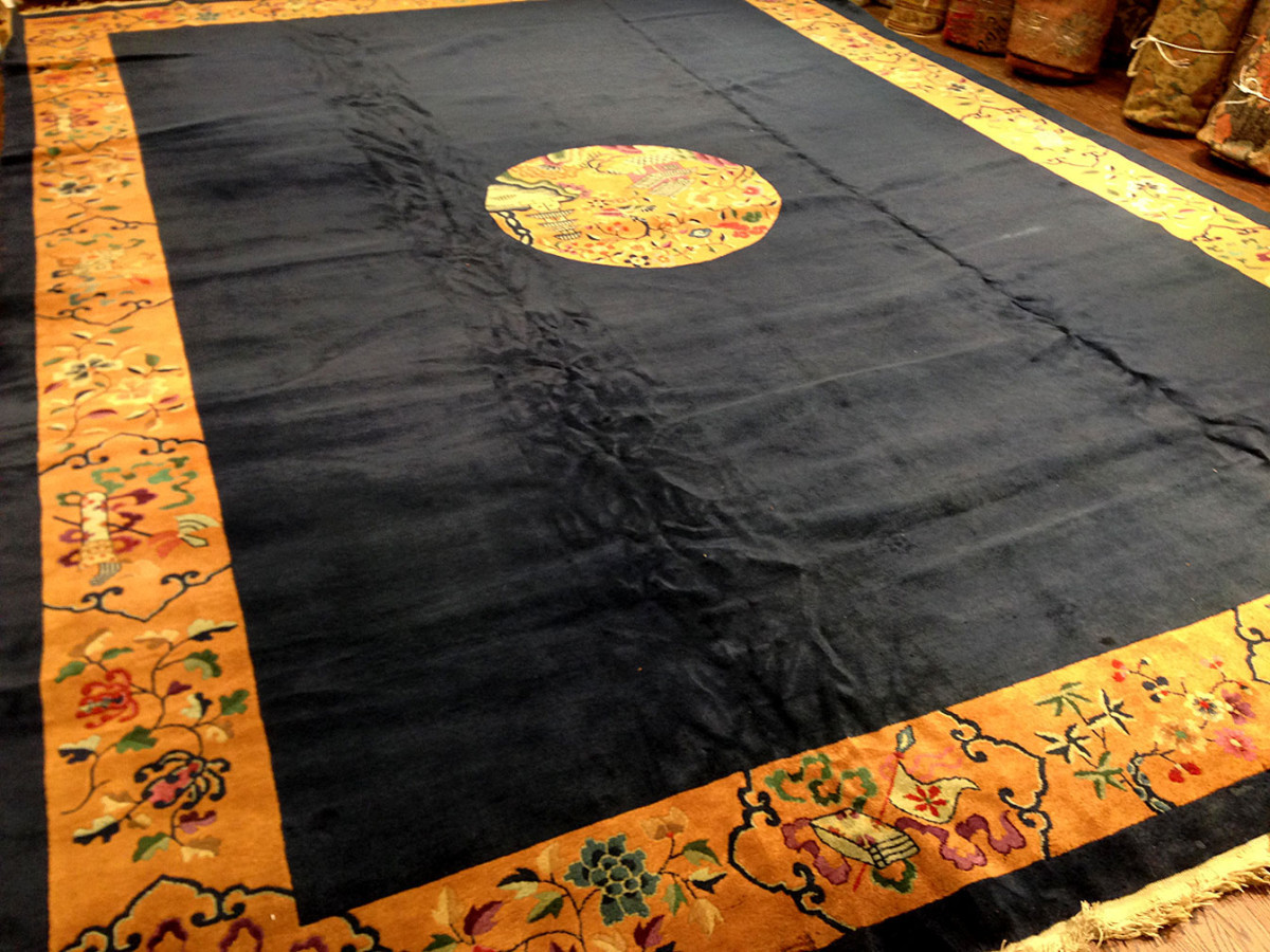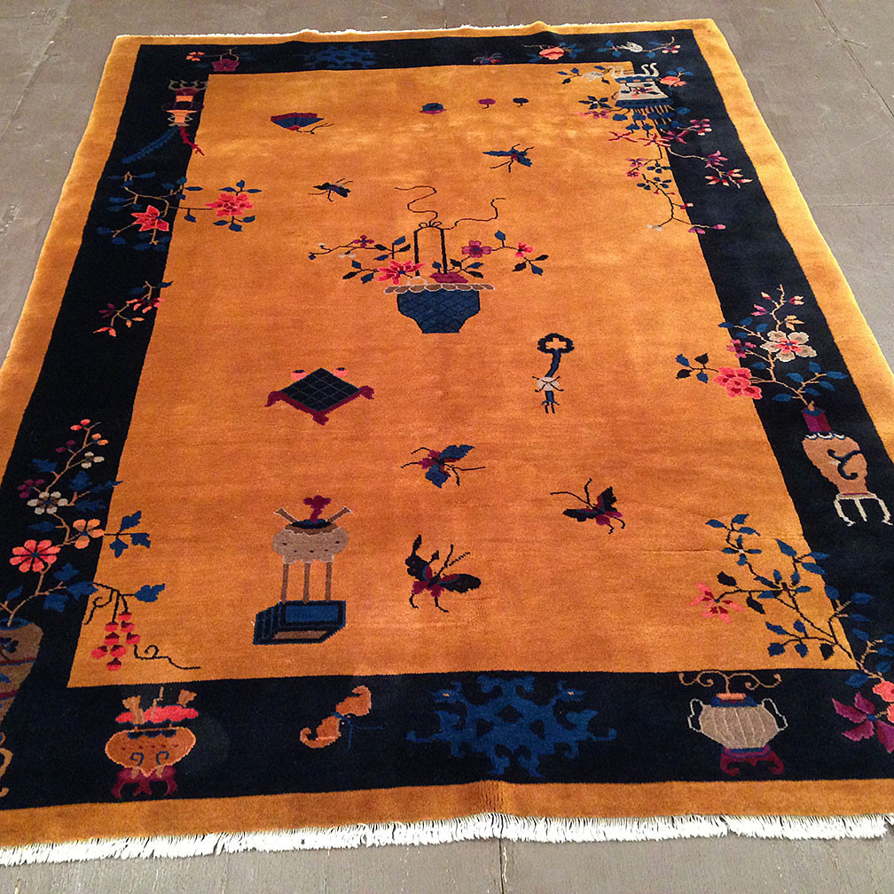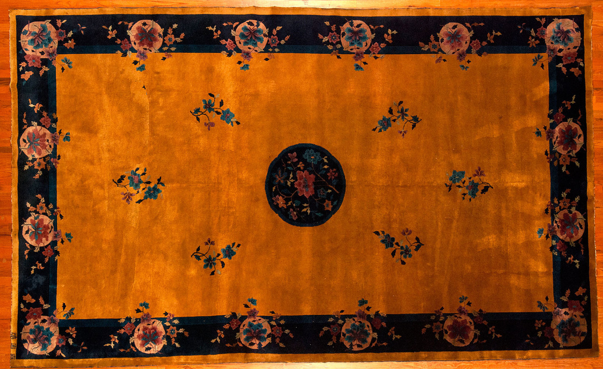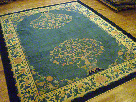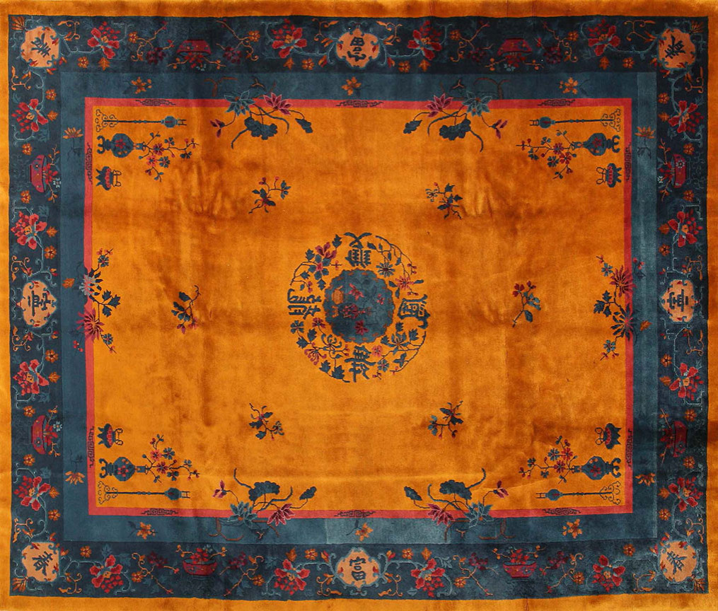 Fette carpets refer to a type of Chinese rug design characterized by dense repeating patterns across the field of the carpet. These rugs often display balanced geometric compositions and reflect the decorative traditions of northern Chinese carpet weaving. The term is sometimes used to describe carpets in which the pattern covers the entire surface in an organized, repeating arrangement.