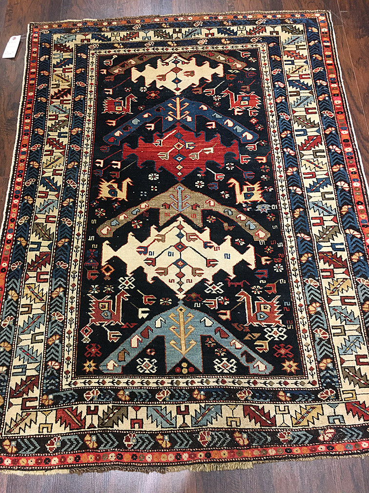 Jezwa rugs are a type of Caucasian carpet, associated with regional village weaving traditions. These rugs typically display geometric patterns, bold motifs, and strong color contrasts, characteristic of Caucasian weaving styles. Jezwa carpets reflect the diversity of design found among Caucasian village rugs. Zejwa is the name of a village south of Kuba in the Caucasus. These are high quality items woven with a unique shape repeated medallions that resemble somehow the Adler Kazak medallions but more squared.