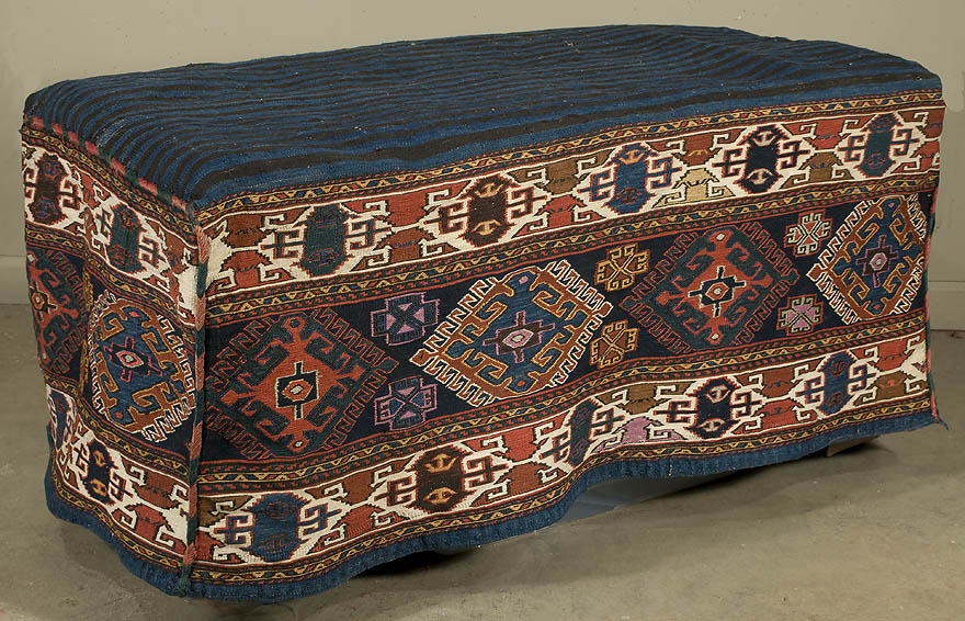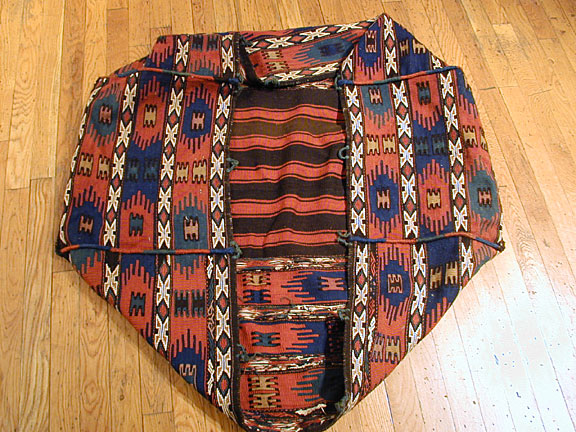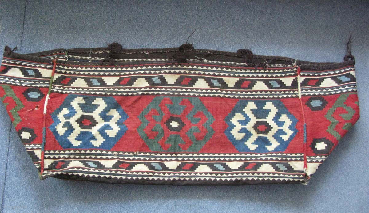 A flat-woven bag in a form of a box, used to contain bedding. Often they considered as cradles but it is not a correct asumtion. The Marash is usually made in a kilim weave and sometimes in a Soumac weave. Being more rare the Soumac weave type is more in demand by collectors.