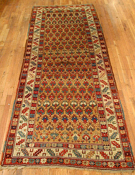 There are many settled Armenian in Shirvan so rugs often have cruci form motifs as well as stylized animals and Persian influenced border patterns.